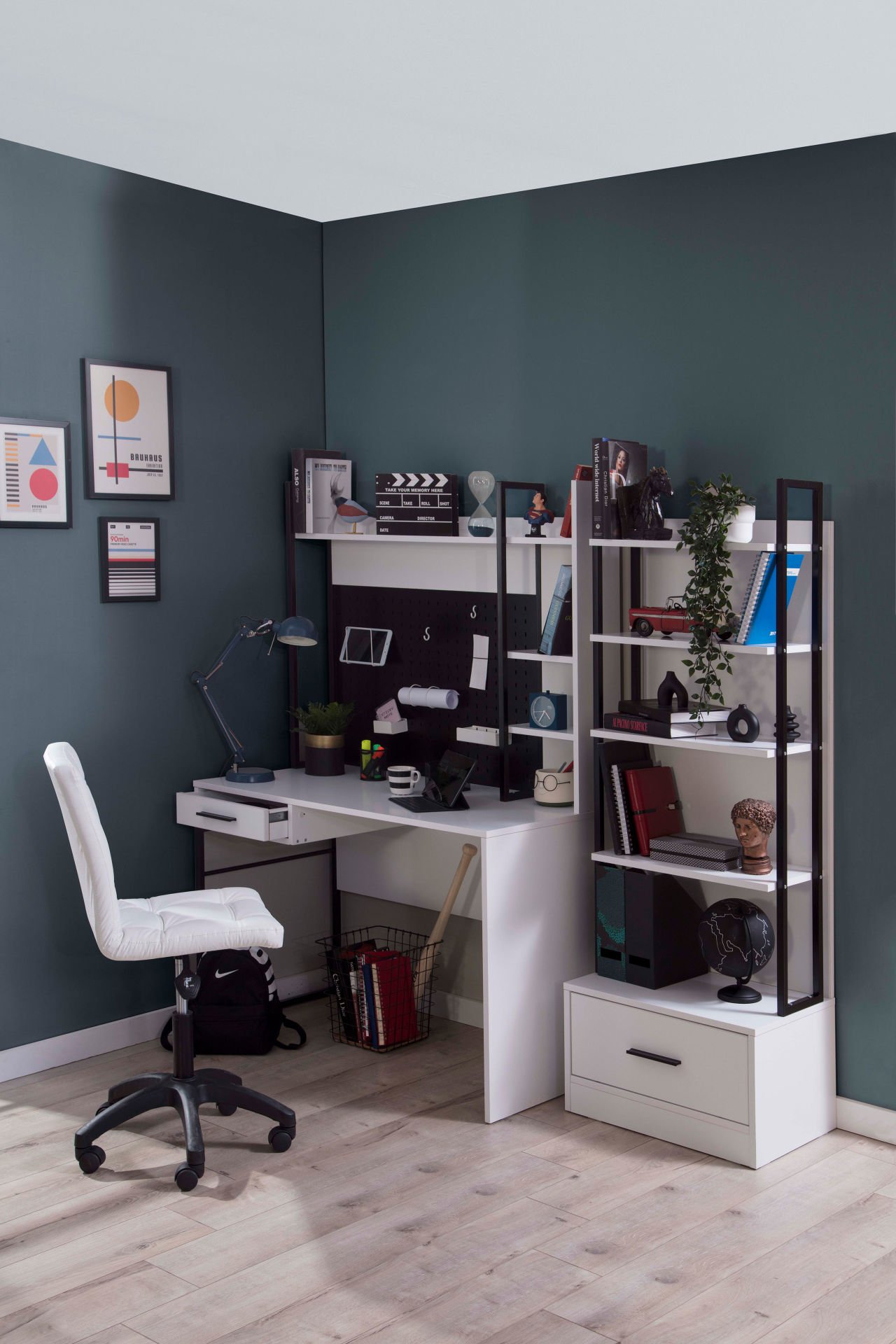 ·Çalışma masası ve kitaplıkta kullanılan detaylar fırınlı boya ile siyaha boyanmış demir profildir.