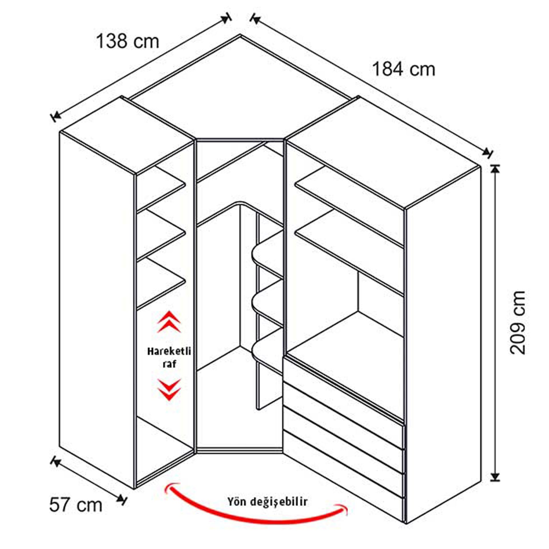 Köşe Dolap Ana Kabin - 1 Kapılı İlave Kabin (1 Adet) | 2 Kapılı İlave Kabin (1 Adet) | 2 Kapak + Çekmeceleri (1 Adet) | Yonga Levha Kapak (2 Adet)