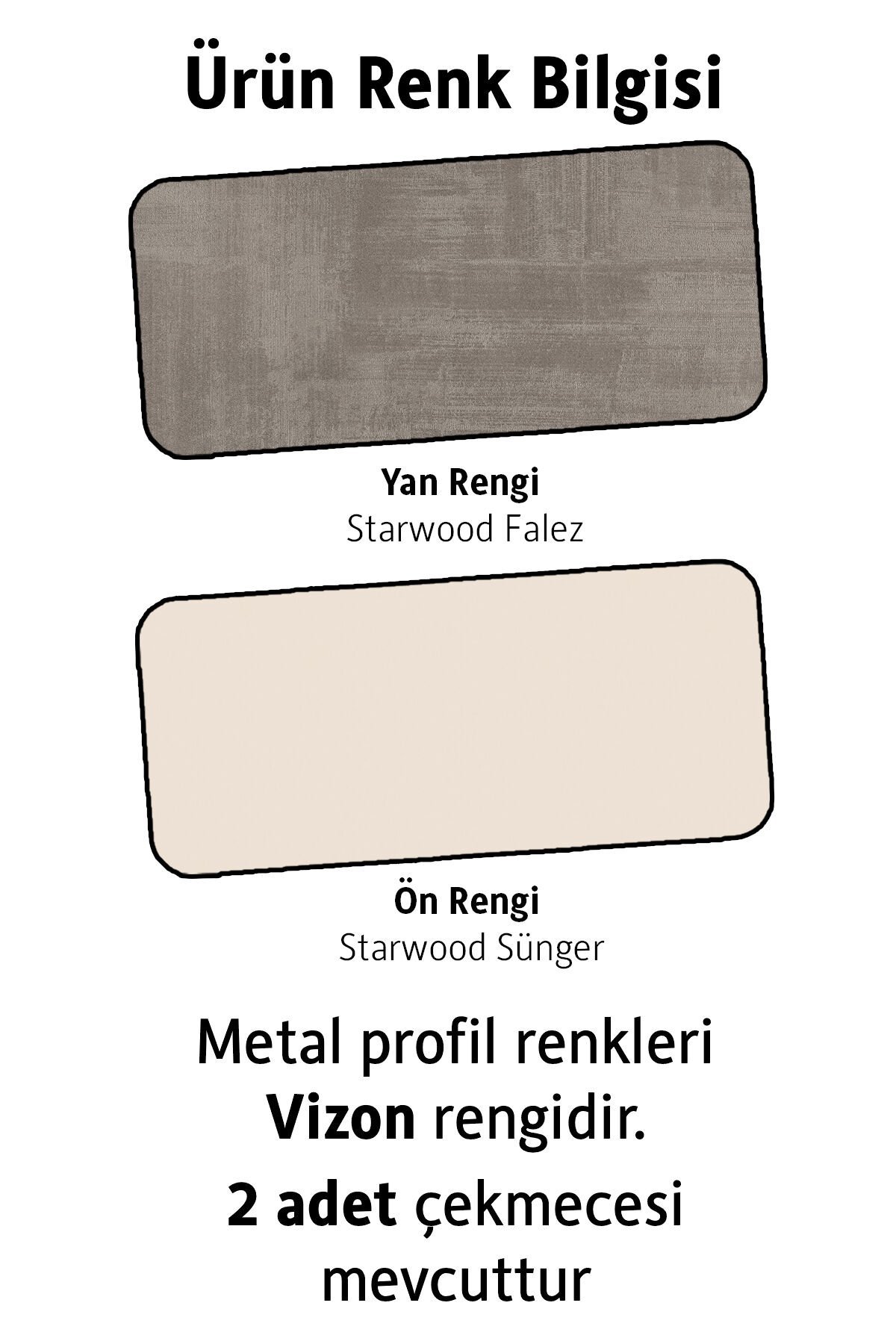 -Ürün yan rengi falez'dir, ön rengi sünger, metalleri vizon rengidir.