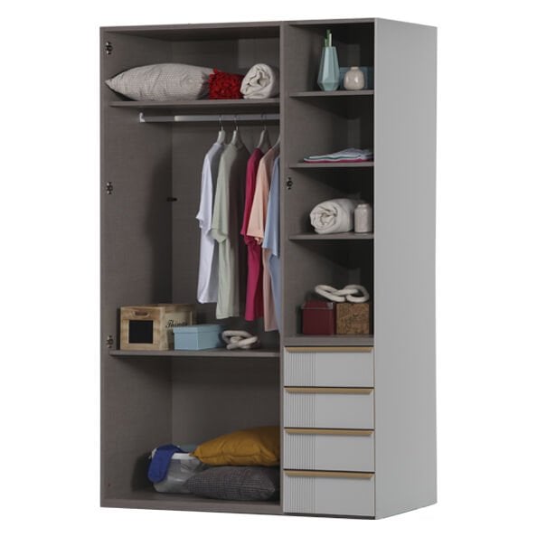 2 Kapılı Dolap Ana Kabin 1 Kapılı İlave Kabin (1 Adet) | 1 Kapak + Çekmeceleri (1 Adet) | Yonga Levha Kapak (2 Adet)