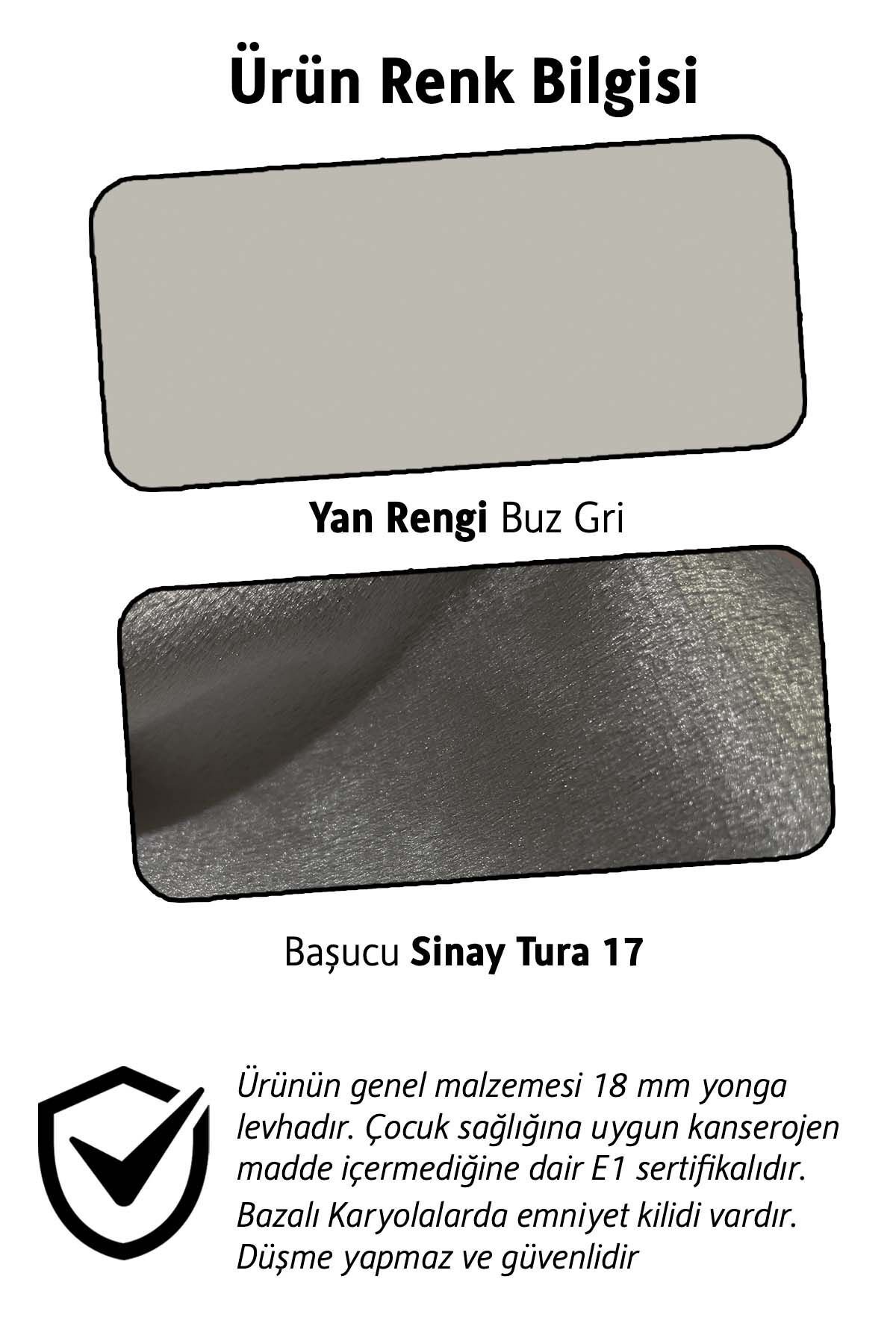 ·Ürünün genel malzemesi 18 mm yonga levhadır. Çocuk sağlığına uygun kanserojen madde içermediğine dair E1 sertifikalıdır.