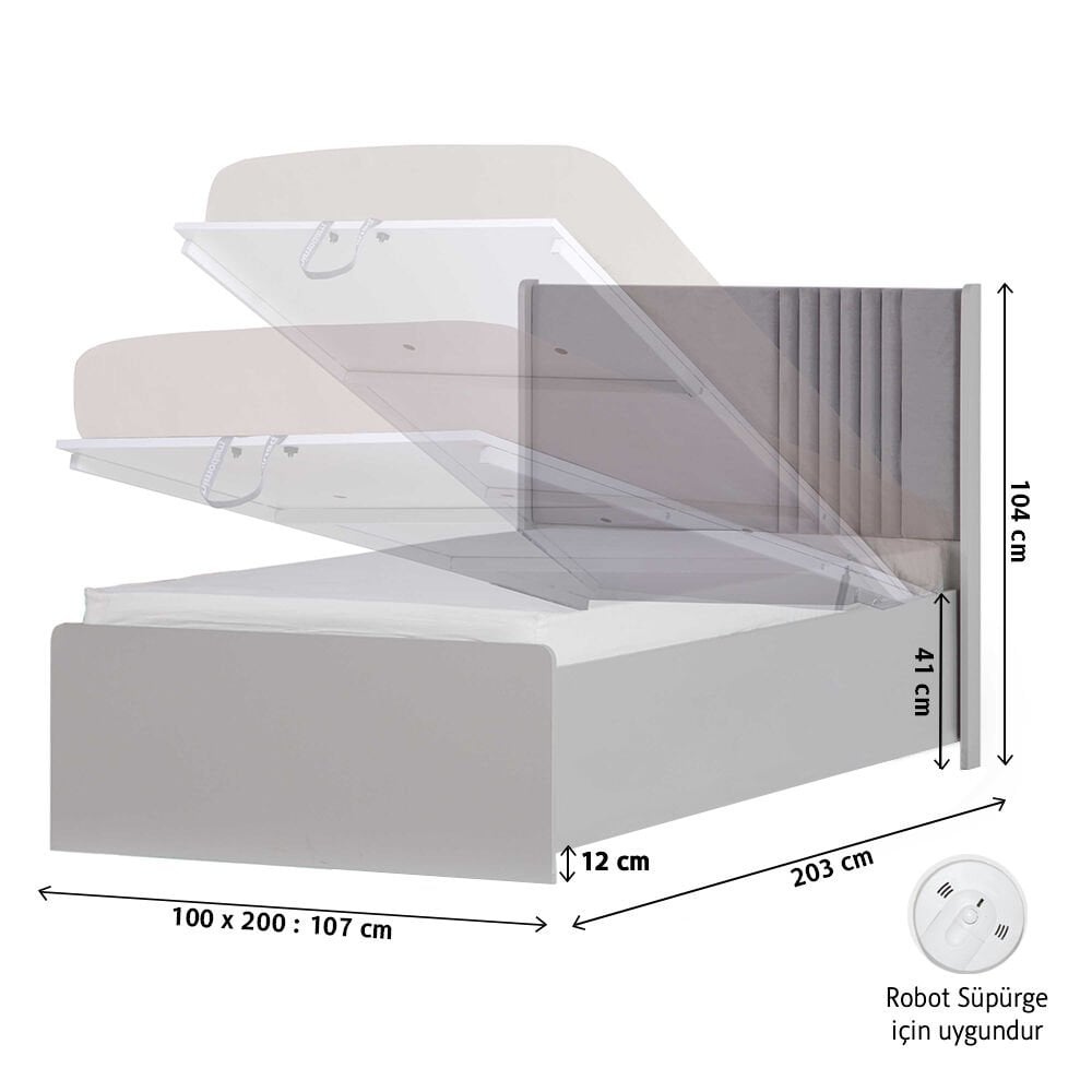 ·Karyola başucu sünger üzerine gri kumaş kaplamadır.