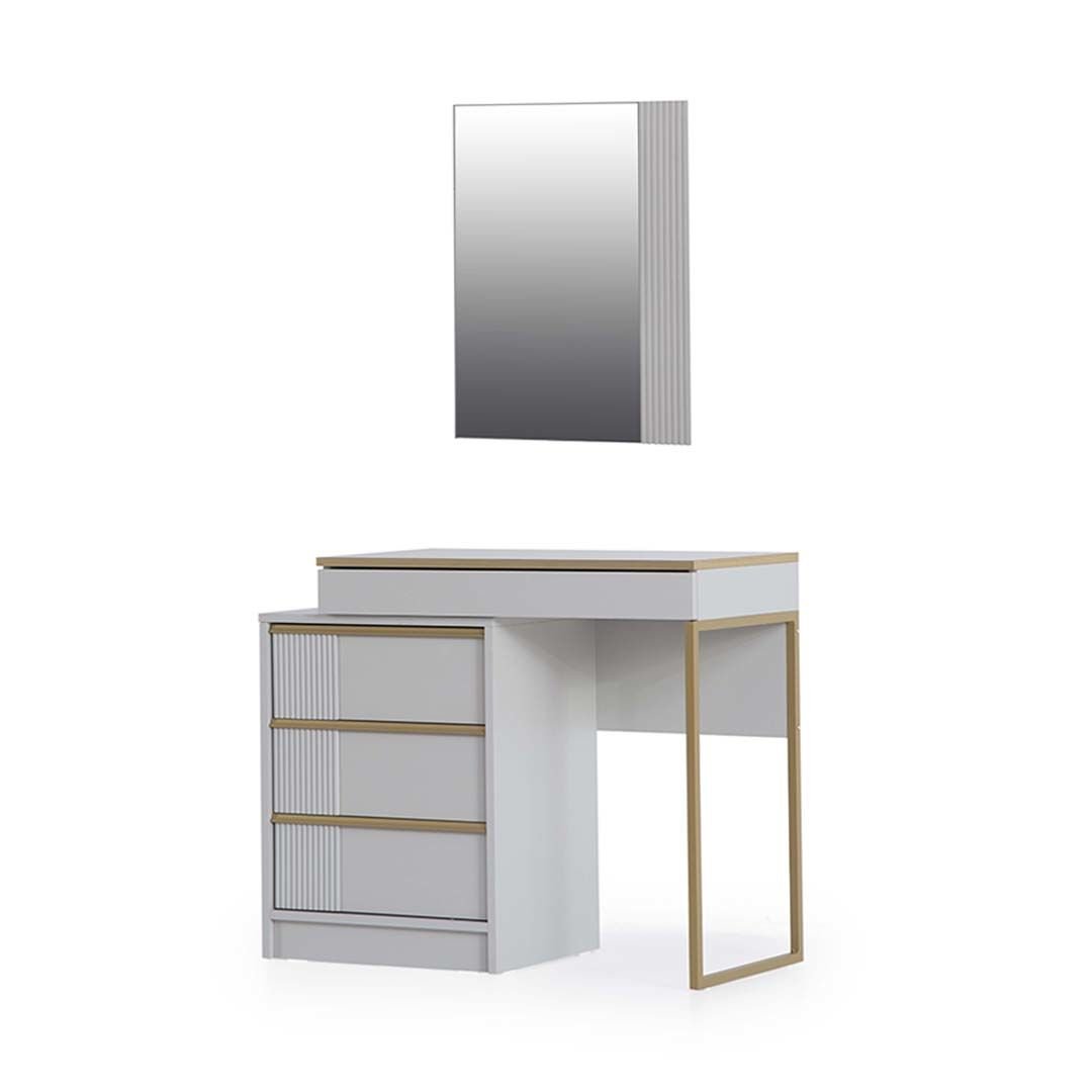 ·Çalışma masası, kitaplıkta ve çamaşırlıkta kullanılan detay fırınlı boya ile gold renginde boyanmış demir profildir.