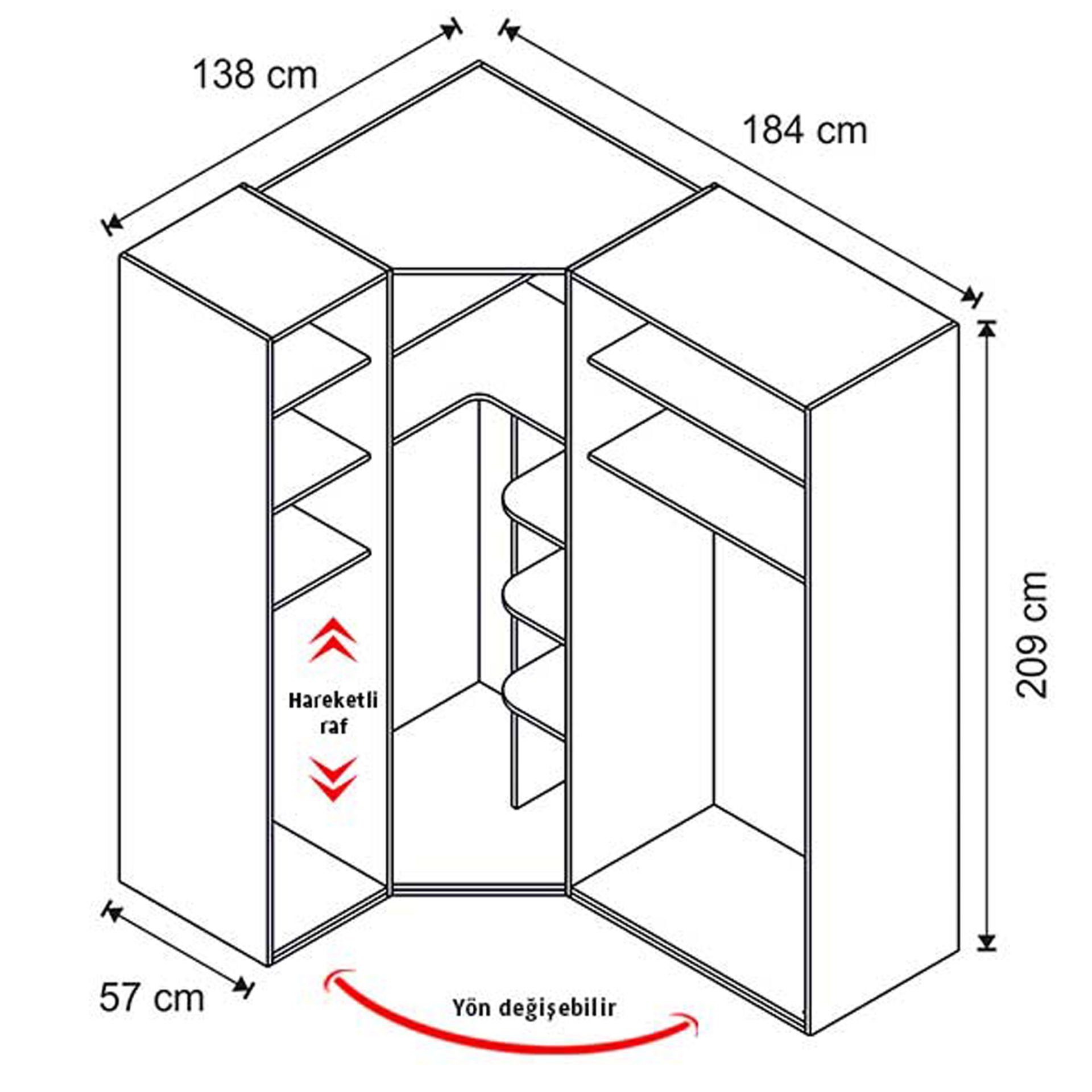 Genişlik: 184 cm | Derinlik: 138 cm | Yükseklik: 209 cm