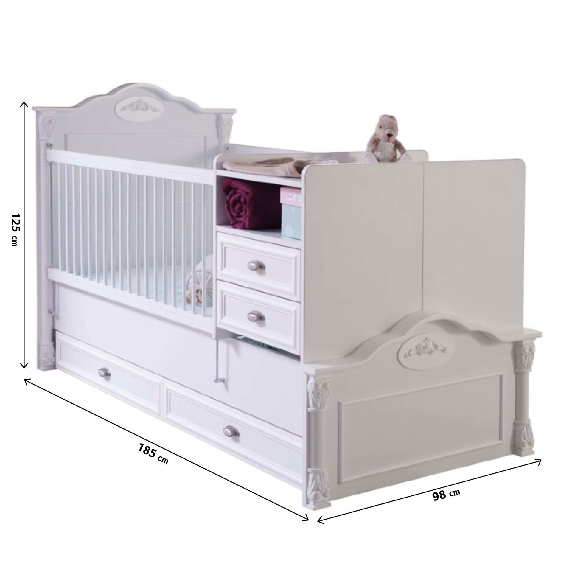 Genişlik: 185 cm | Derinlik: 98 cm | Yükseklik: 125 cmHelen Büyüyen Bebe Karyolası 80 x 180