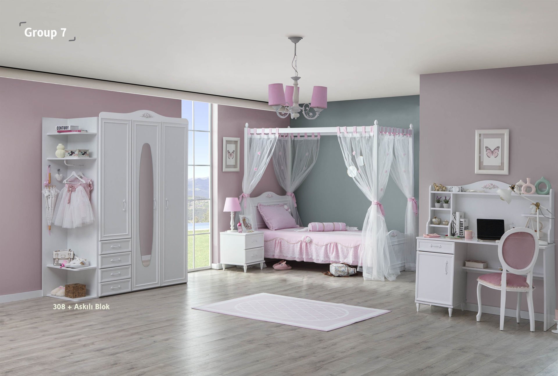 3 Kapılı Dolap + 100 x 200 Karyola + 100 x 200 Cibinlik + Ayak + Komodin + Çalışma Masası + Ünite
