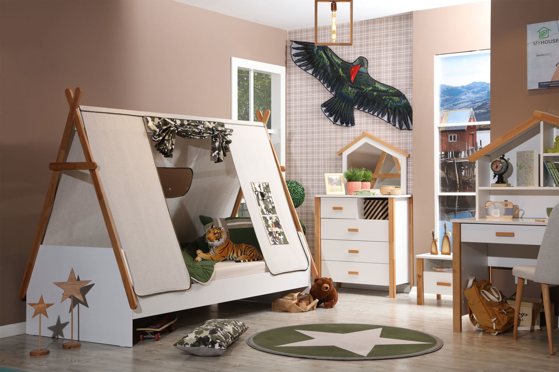 My House Kamp Çadır (Bej - Kamuflaj) Montessori