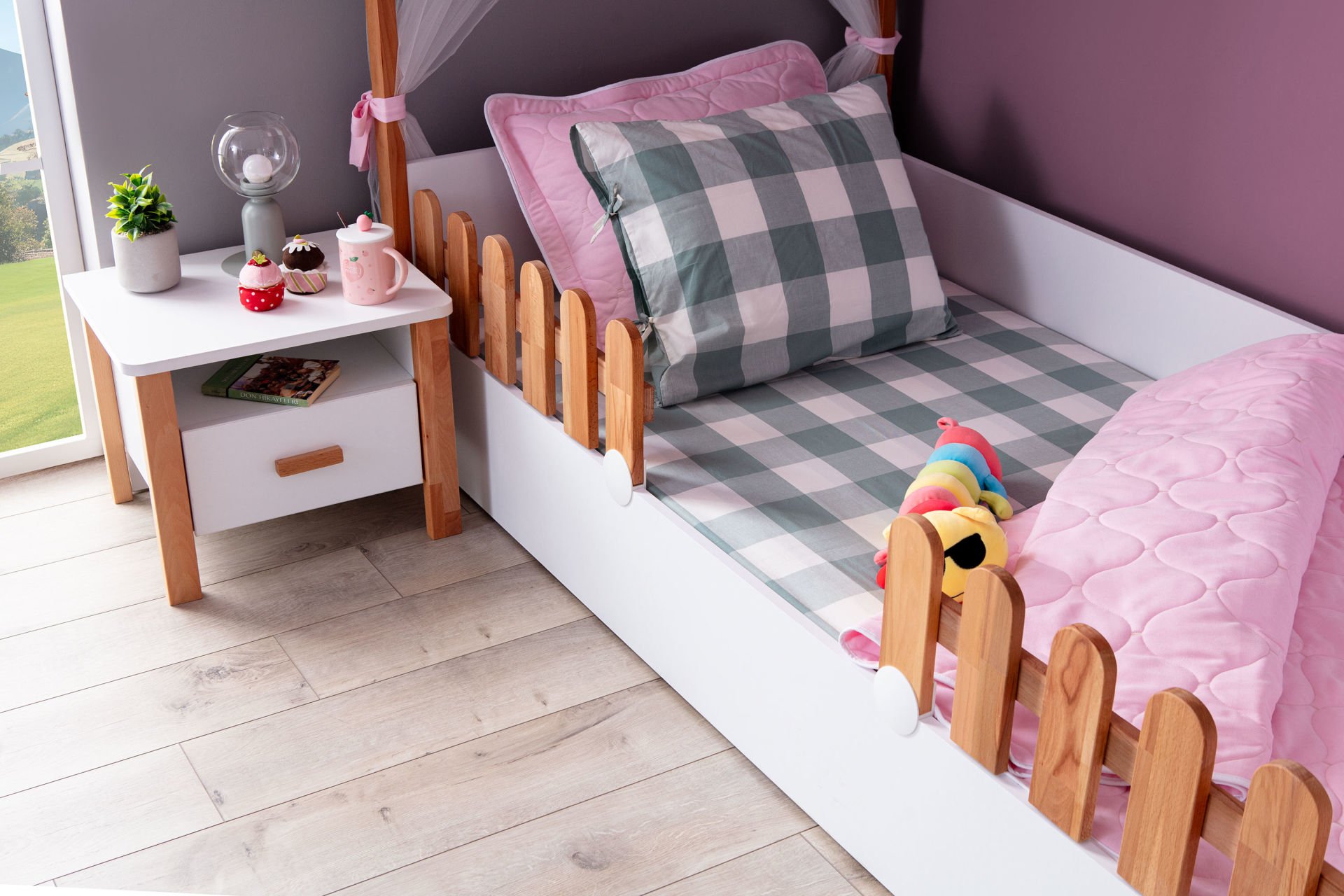 ·Ürün rengi düz beyazdır panelleri ahşap rengindedir.