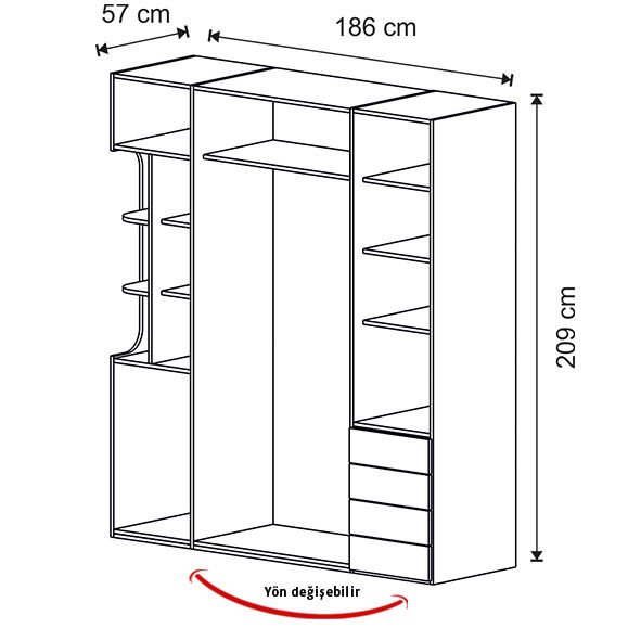 Genişlik: 186 cm | Derinlik: 57 cm | Yükseklik: 209 cm