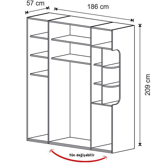 Genişlik: 186 cm | Derinlik: 57 cm | Yükseklik: 209 cm