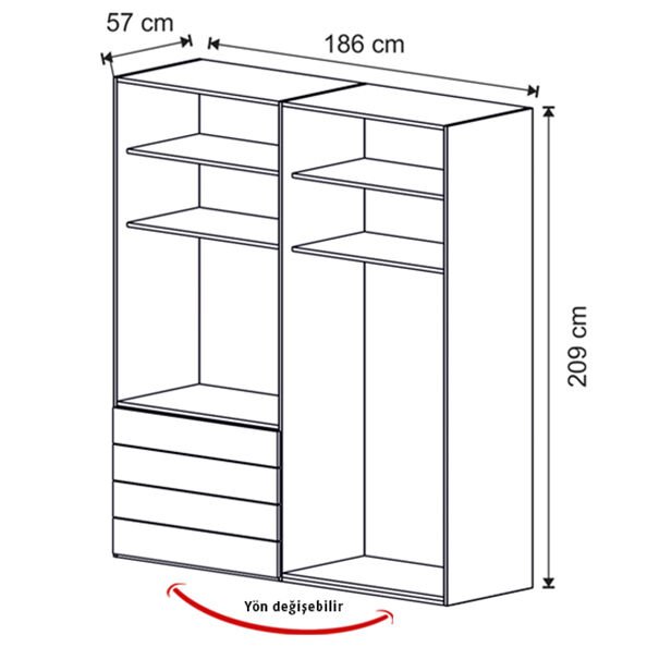 Genişlik: 186 cm | Derinlik: 57 cm | Yükseklik: 209 cm