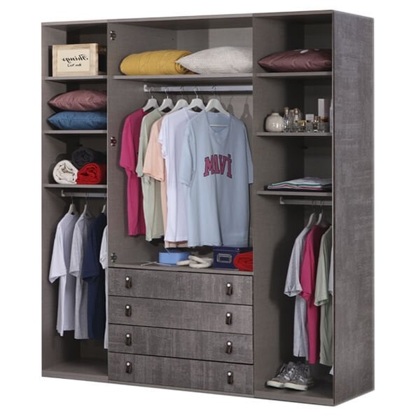 2 Kapılı Ana Kabin + 1 Kapılı İlave Kabin (2 Adet) + Yonga Levha Kapak (2 Adet) + 2 Kapak+Çekmeceleri (1 Adet)