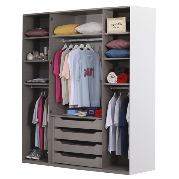 2 Kapılı Ana Kabin + 1 Kapılı İlave Kabin (2 Adet) + MDF Kapak (2 Adet) + Cam Kapak (2Adet) + 2 Kapılı İç Çekmece (1 Adet)