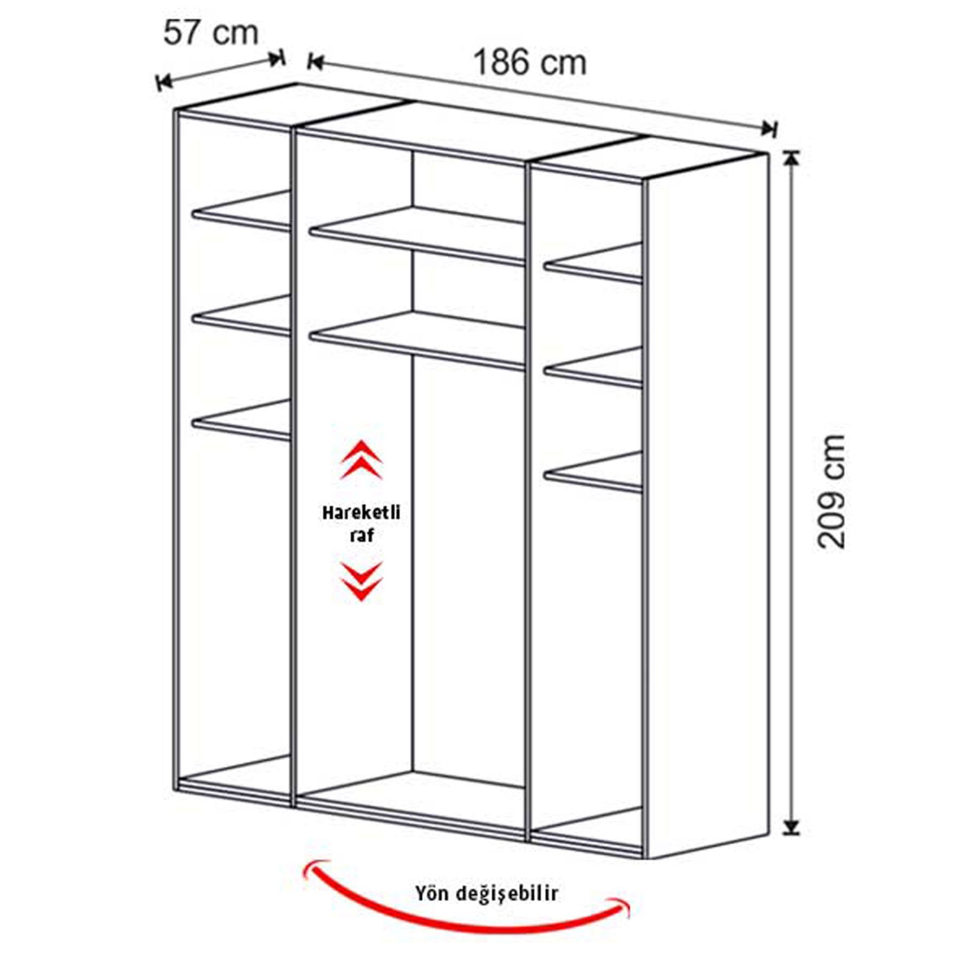 Genişlik: 186 cm | Derinlik: 57 cm | Yükseklik: 209 cm