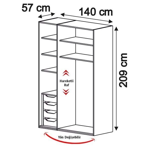 Genişlik: 140 cm | Derinlik: 57 cm | Yükseklik: 209 cm