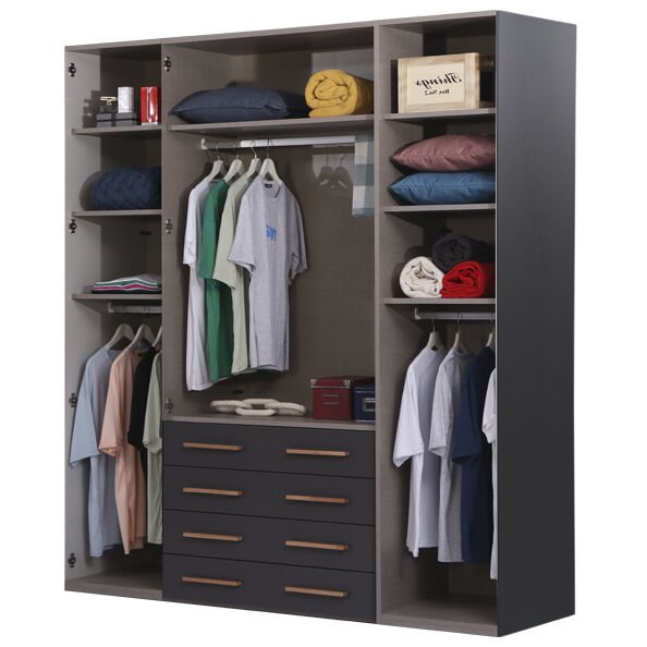 2 Kapılı Ana Kabin + 1 Kapılı İlave Kabin (2 Adet) + Yonga Levha Kapak (2 Adet) + 2 Kapak + Çekmeceleri (1 Adet)