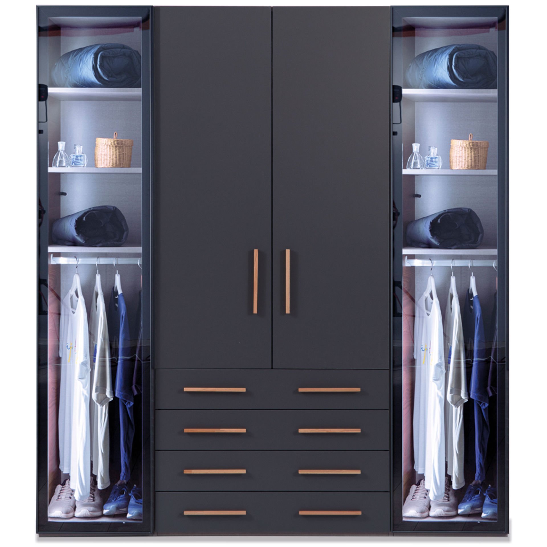 2 Kapılı Dolap Ana Kabin 1 Kapılı İlave Kabin (2 Adet) | 2 Kapak + Çekmeceleri (1 Adet) | Cam Kapak (Led Dahil) (2 Adet)
