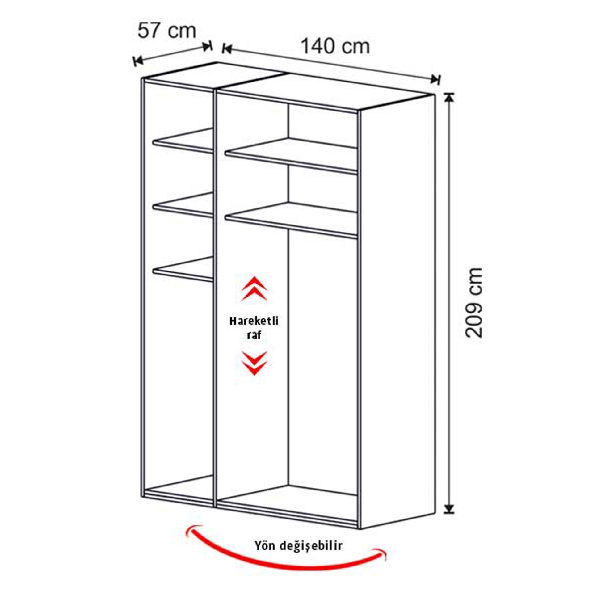 Genişlik: 140 cm | Derinlik: 57 cm | Yükseklik: 209 cm