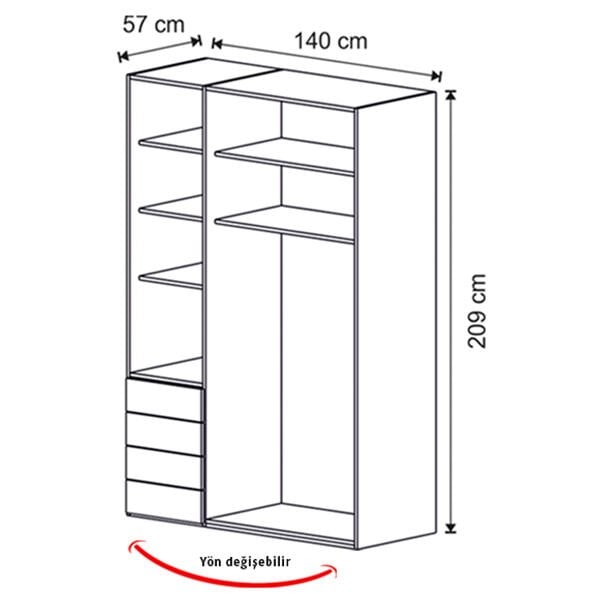 Genişlik: 140 cm | Derinlik: 57 cm | Yükseklik: 209 cm