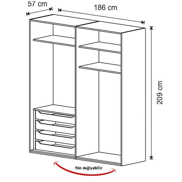 Genişlik: 186 cm | Derinlik: 57 cm | Yükseklik: 209 cm