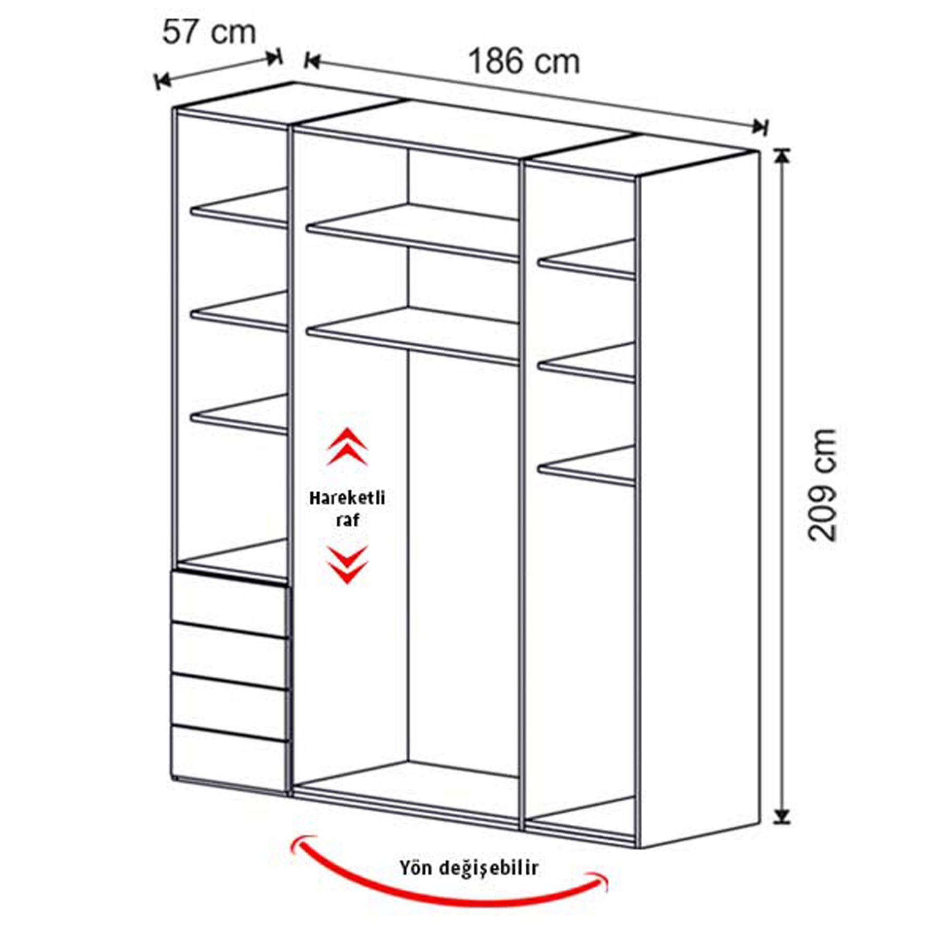Genişlik: 186 cm | Derinlik: 57 cm | Yükseklik: 209 cm