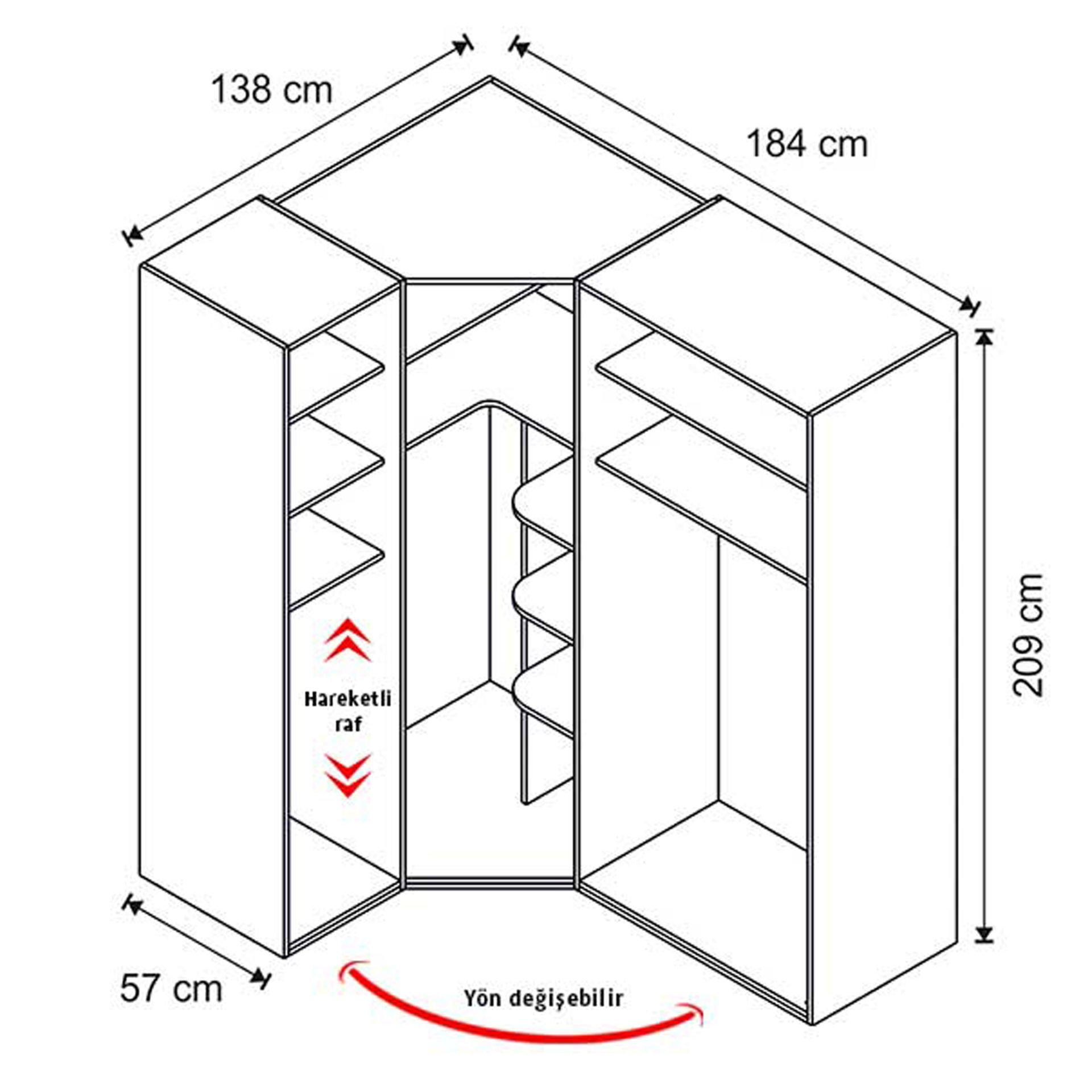 Genişlik: 184 cm | Derinlik: 138 cm | Yükseklik: 209 cm