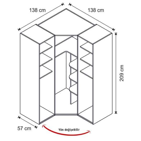 Genişlik: 138 cm | Derinlik: 138 cm | Yükseklik: 209 cm
