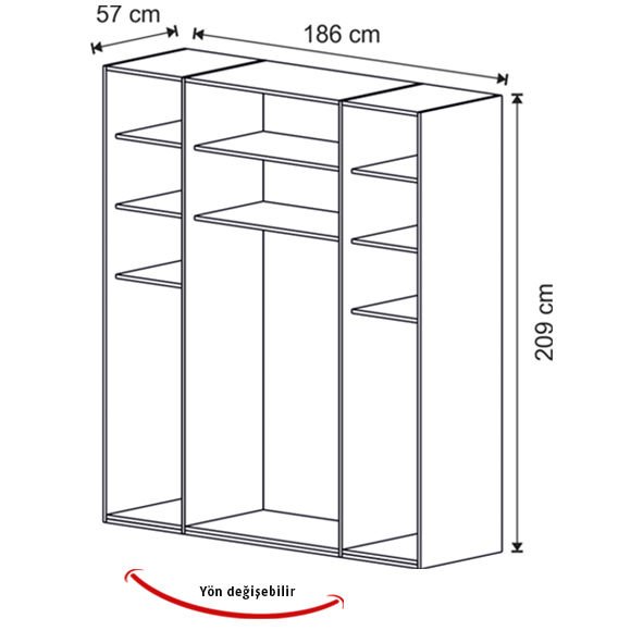 Genişlik: 186 cm | Derinlik: 57 cm | Yükseklik: 209 cm