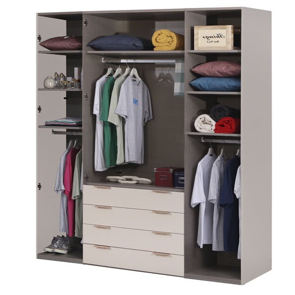 2 Kapılı Ana Kabin + 1 Kapılı İlave Kabin (2 Adet) + MDF Kapak (1 Adet) + Yonga Levha Kapak (1 Adet) + 2 Kapak + Çekmeceleri (1 Adet)