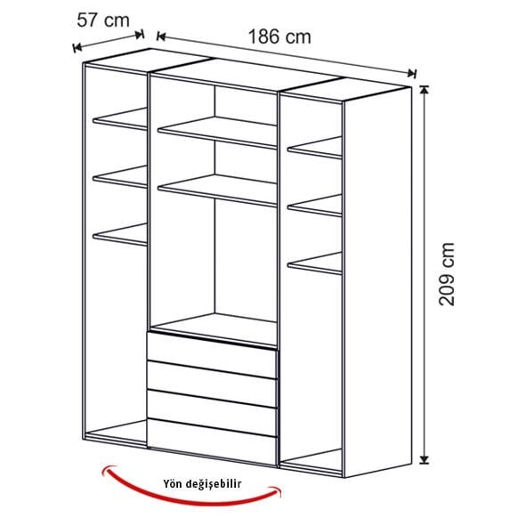 Genişlik: 186 cm | Derinlik: 57 cm | Yükseklik: 209 cm
