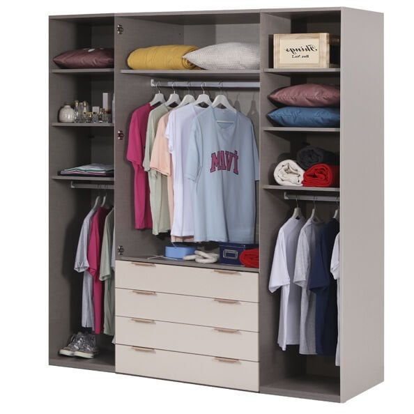 2 Kapılı Dolap Ana Kabin + 1 Kapılı İlave Kabin (2 Adet) + 2 Kapak Çekmeceleri (1 Adet) + Cam Kapak (Led Dahil) (2 Adet)