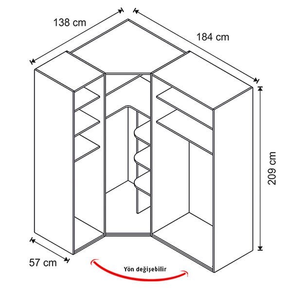 Genişlik: 184 cm | Derinlik: 138 cm | Yükseklik: 209 cm
