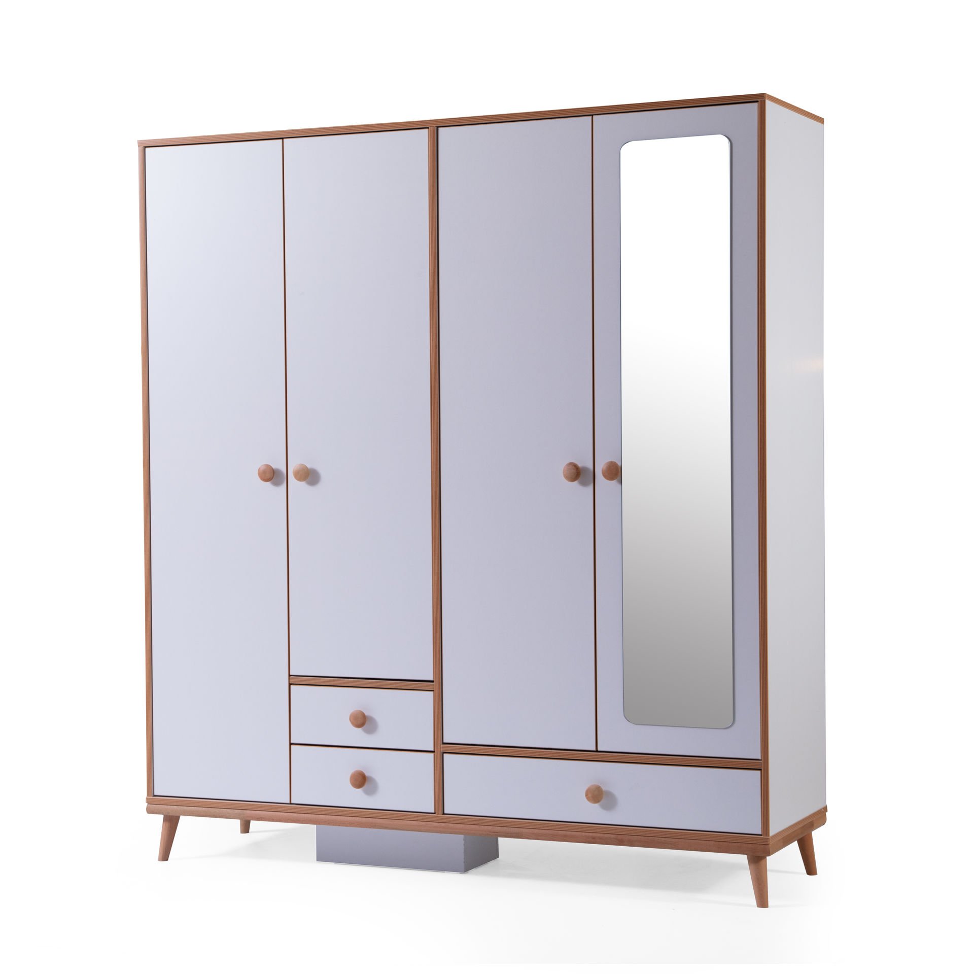Retro 4 Kapılı Dolap (Düz Beyaz)