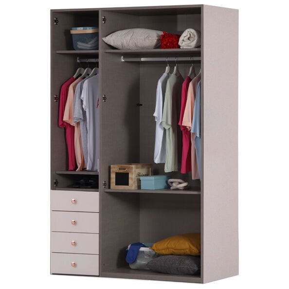 2 Kapılı Dolap Ana Kabin + 1 Kapılı İlave Kabin (1 Adet) + 1 Kapak Çekmeceleri (1 Adet) + Yonga Levha Kapak (2 Adet)