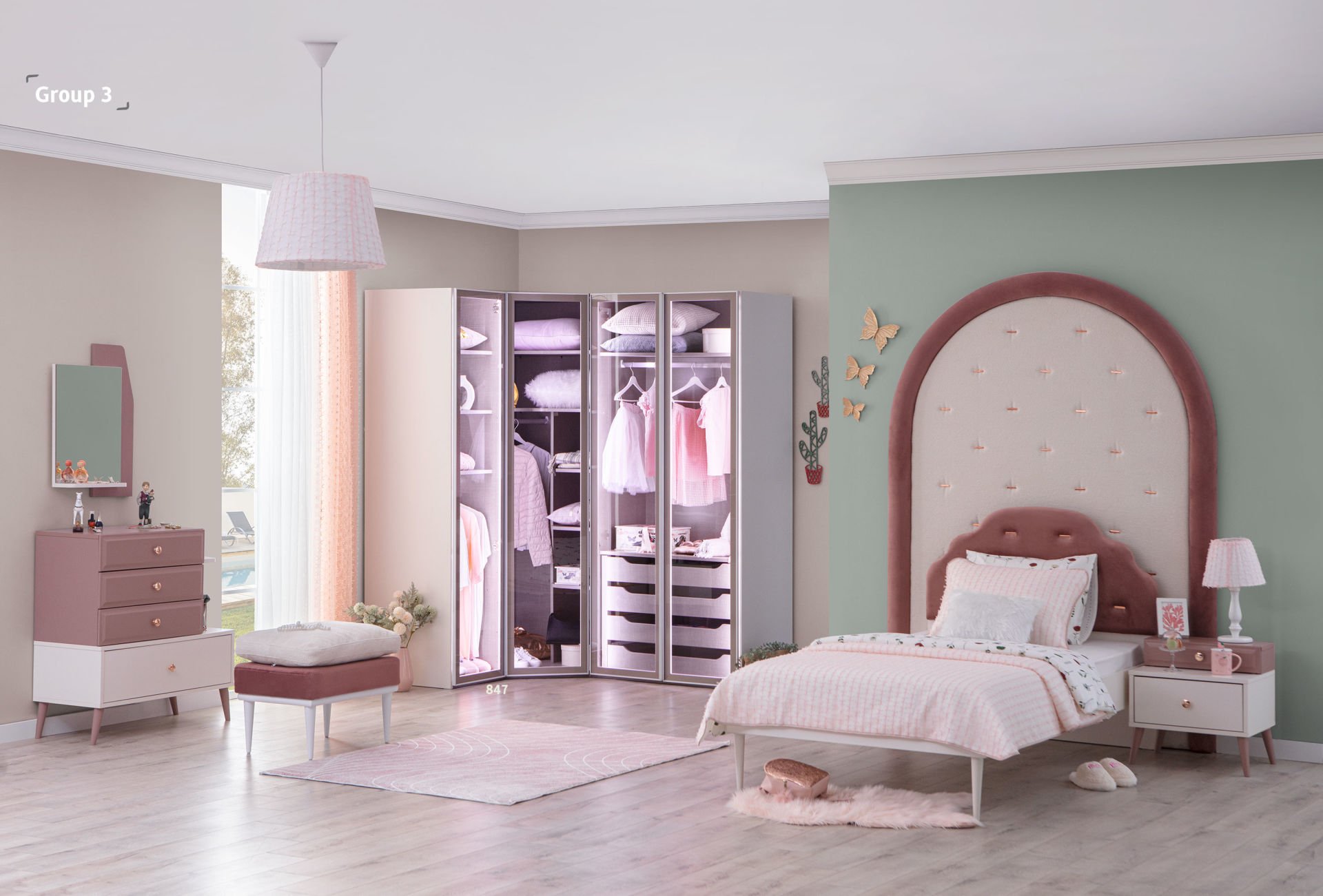 ·Rose rengi çekmece önleri boyalı MDF'dir.
