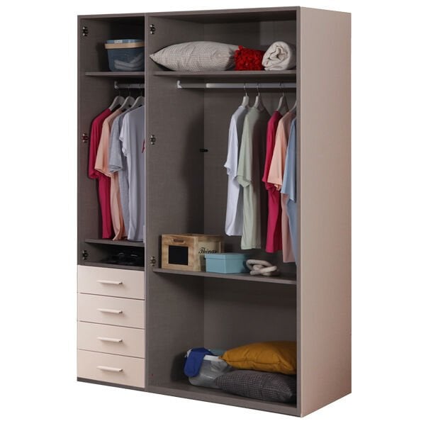 2 Kapılı Dolap Ana Kabin 1 Kapılı İlave Kabin (1 Adet) | 1 Kapak + Çekmeceleri (1 Adet) | Yonga Levha Kapak (2 Adet)