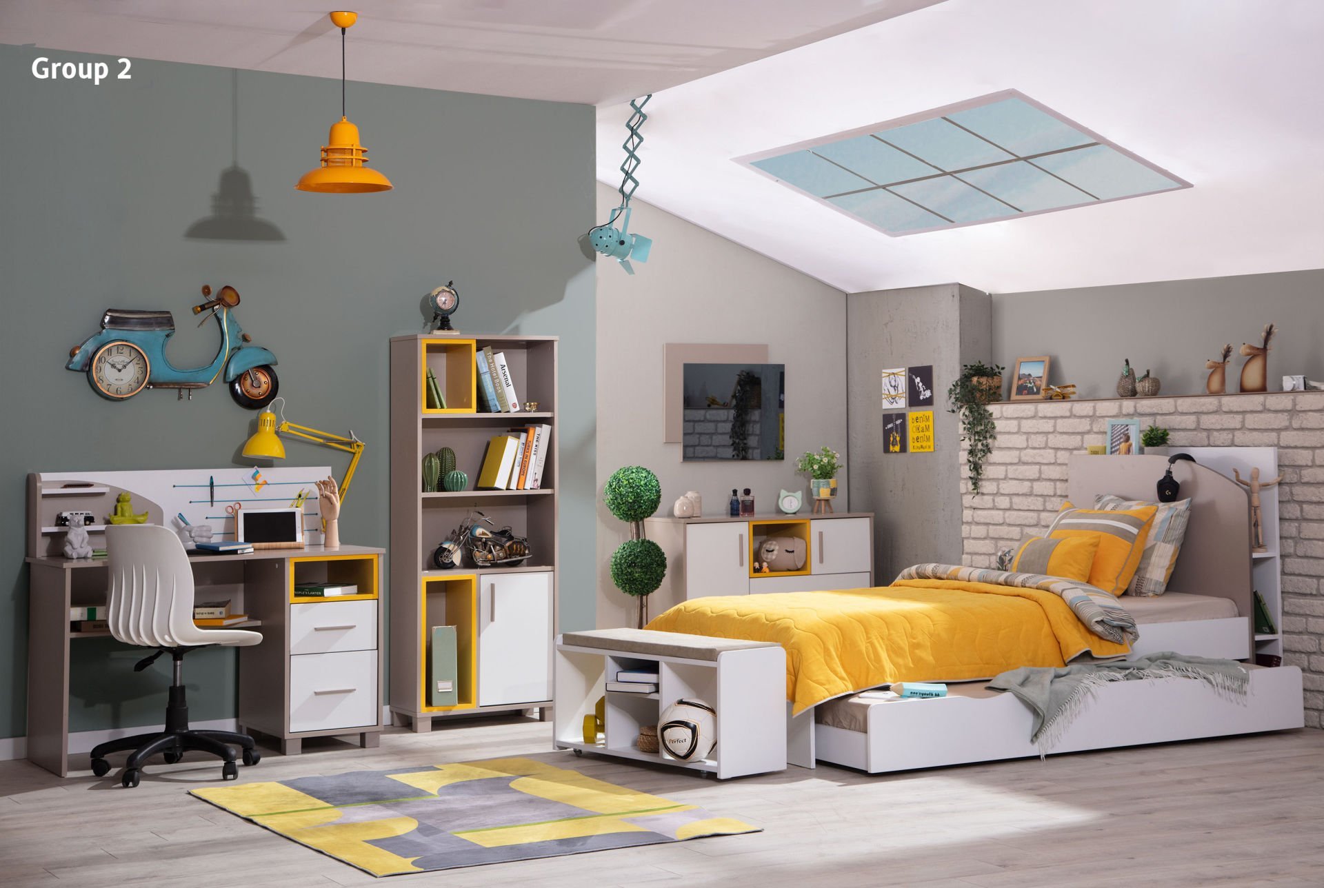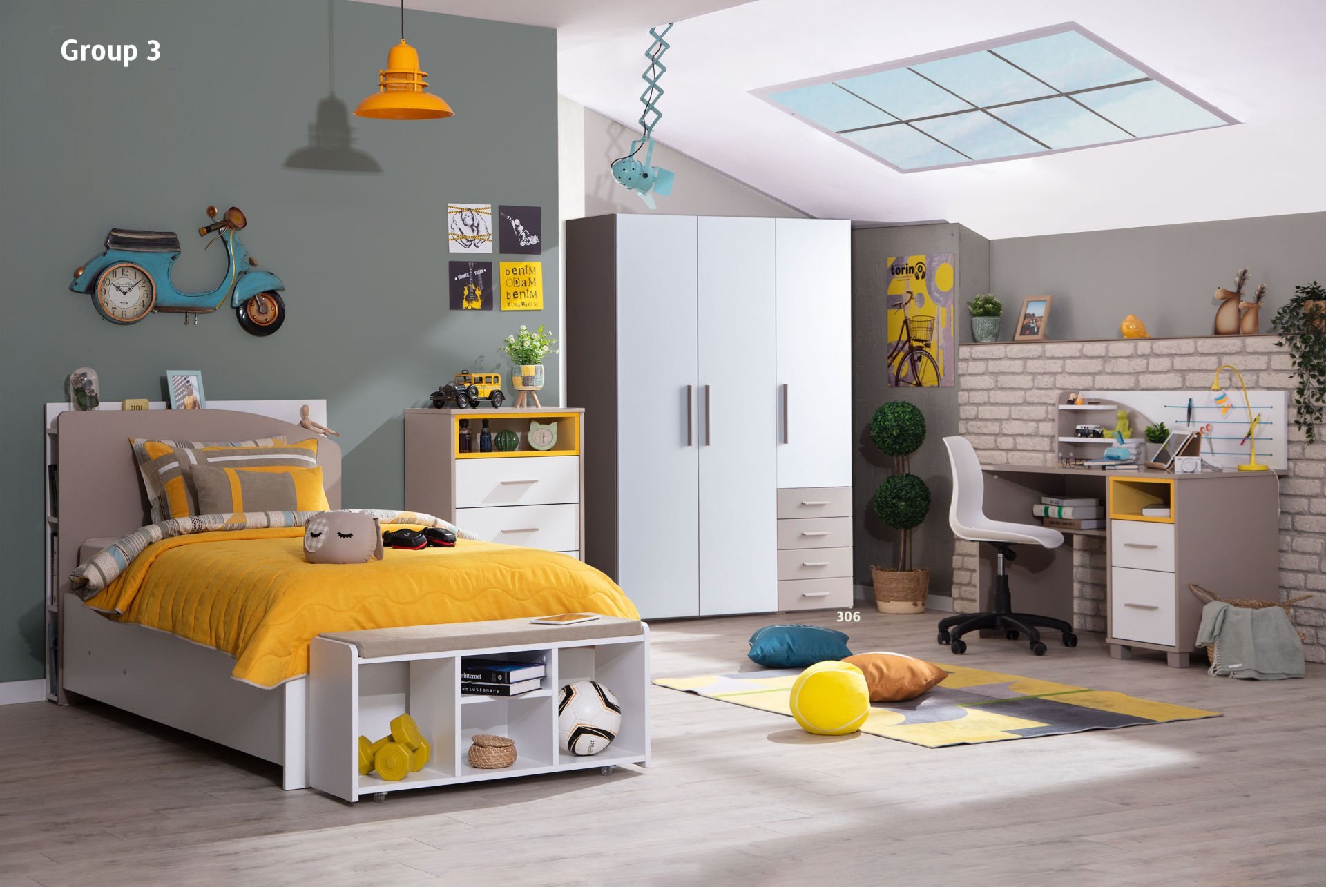 ·Komodin, çalışma masası, çamaşırlık ve kitaplıkta bulunan sarı blok takılıp çıkarılabilir.