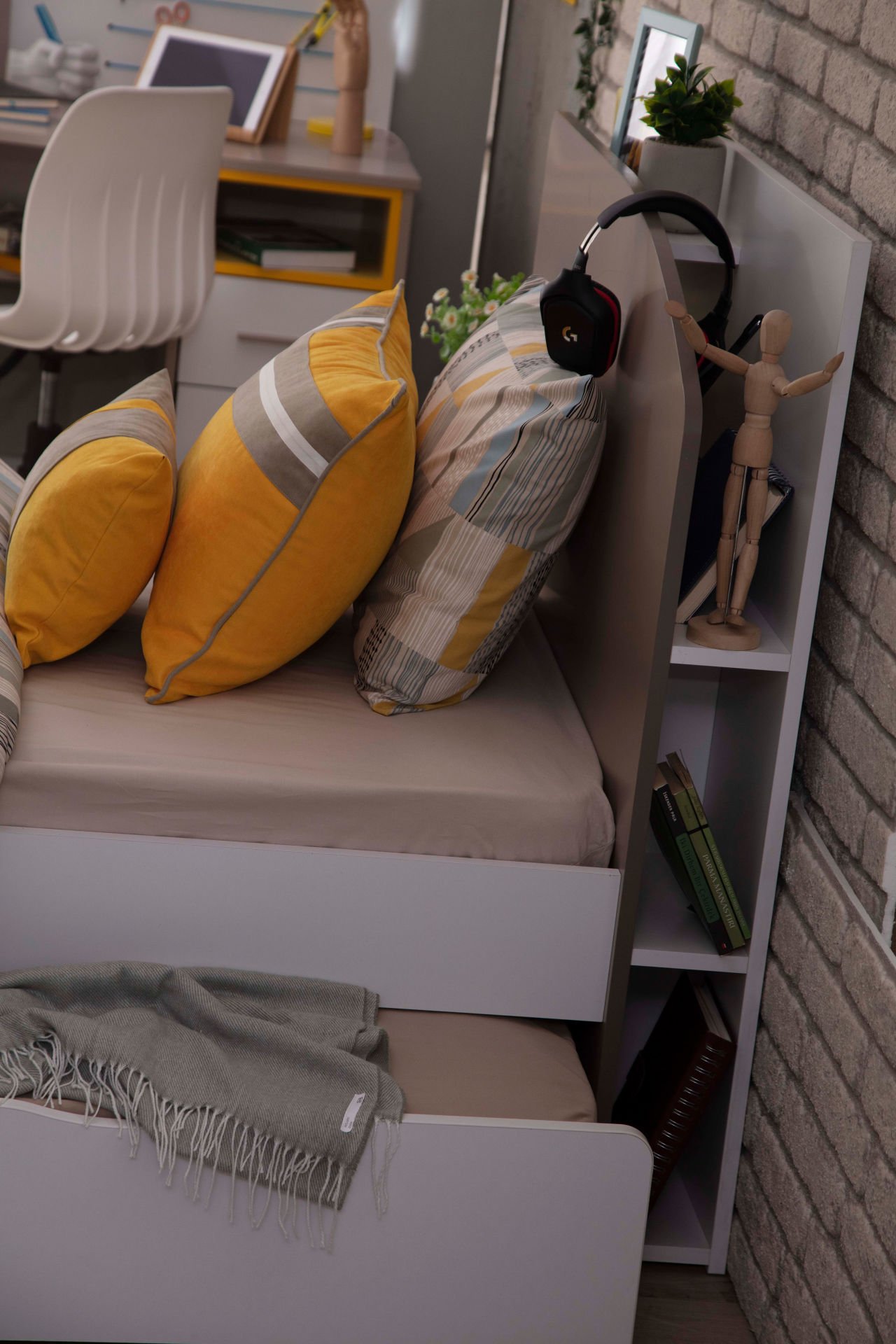 ·Karyola başucunun arkasında eşya koyabilmek için bölmeli hazneler bulunur.