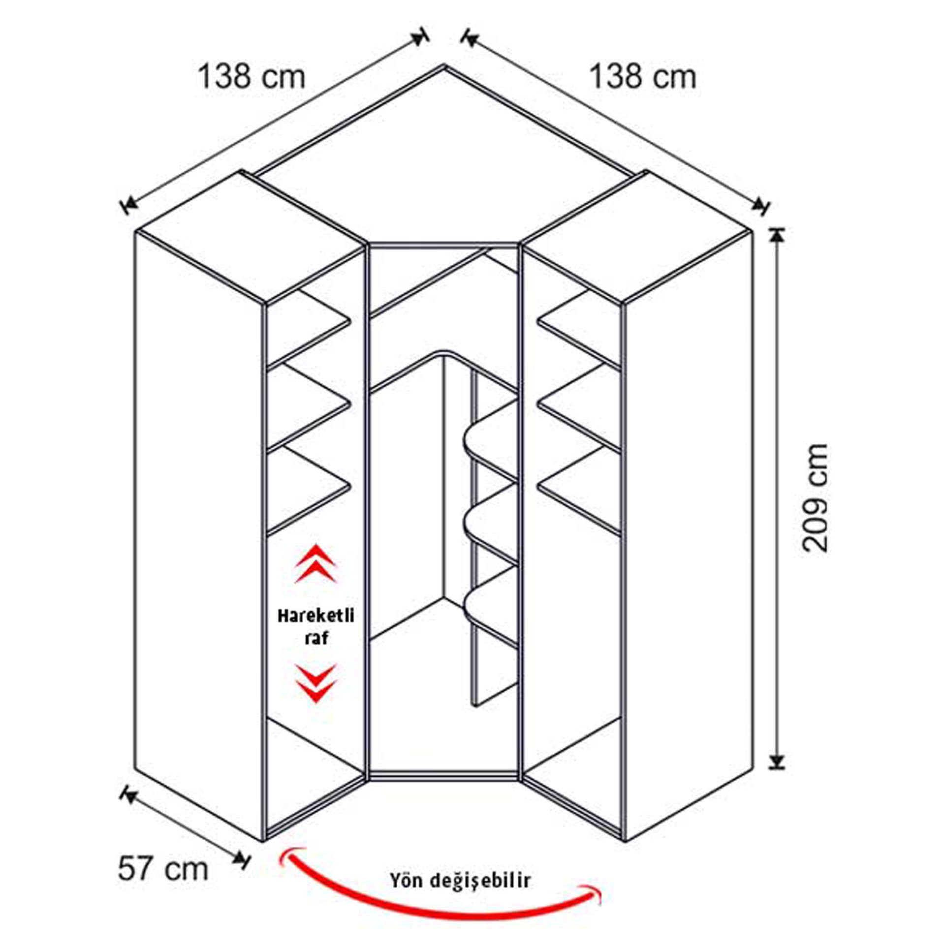 Genişlik: 138 cm | Derinlik: 138 cm | Yükseklik: 209 cm